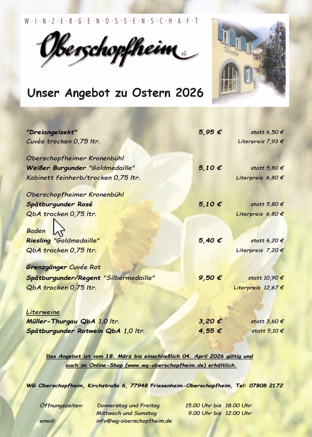 Unser diesjähriges Osterangebot ist vom 18.03. - 04.04.2026 gültig.